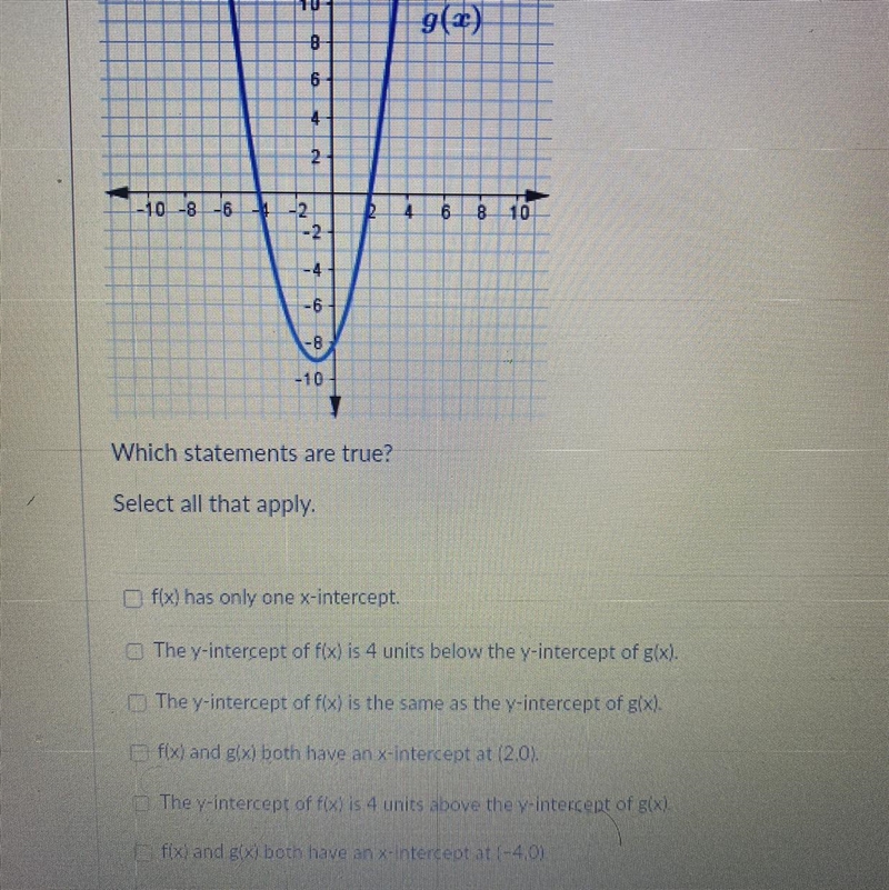 the y-intercept of f(x) is 4 units above the y-intercept of g(x) (option 5)