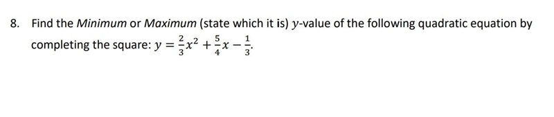 use the formula x= -b/2a to find the max and min