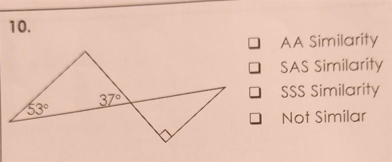 Determine whether the triangles are similar by AA similarity, SAS similarity, SSS similarity, or not similar.
