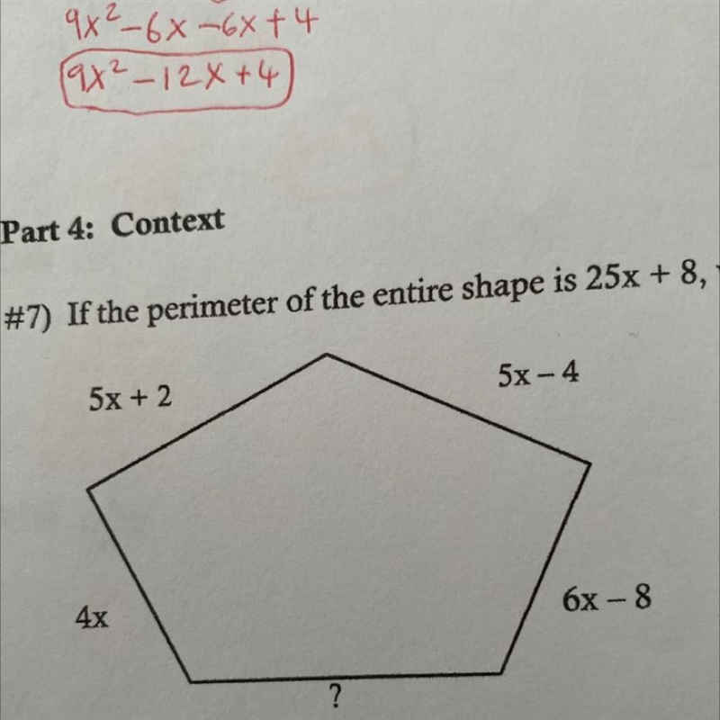 perimeter = m+(4x)+(5x+2)+(5x-4)+(6x-8)