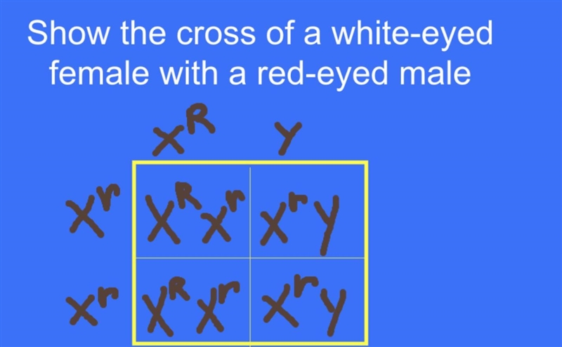 The cross-over diagram is correct. The number of flies of each sex with red eyes will depend on the genotype of the parents.If a red-eyed male mates with a white-eyed female, all of the offspring will be female and have red eyes (XRXr).If a red-eyed male mates with a red-eyed female, half of the offspring will be male and have red eyes (XRY) and half will be female and have red eyes (XRXr).If a white-eyed male mates with a white-eyed female, all of the offspring will be white-eyed (XrXr).Therefore, if there are 100 males and 200 females, the number of flies of each sex with red eyes will be:Males: 50Females: 150I hope this helps!
