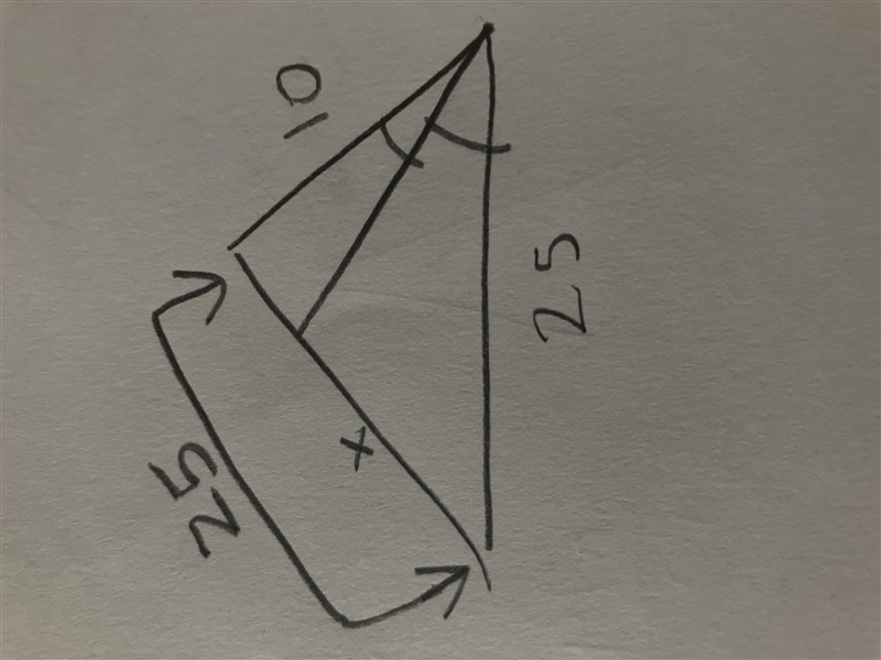 the segment inside the triangle is an angle bisector and divides the side opposite the bisected angle into segments that are proportional to the other two sides, that is