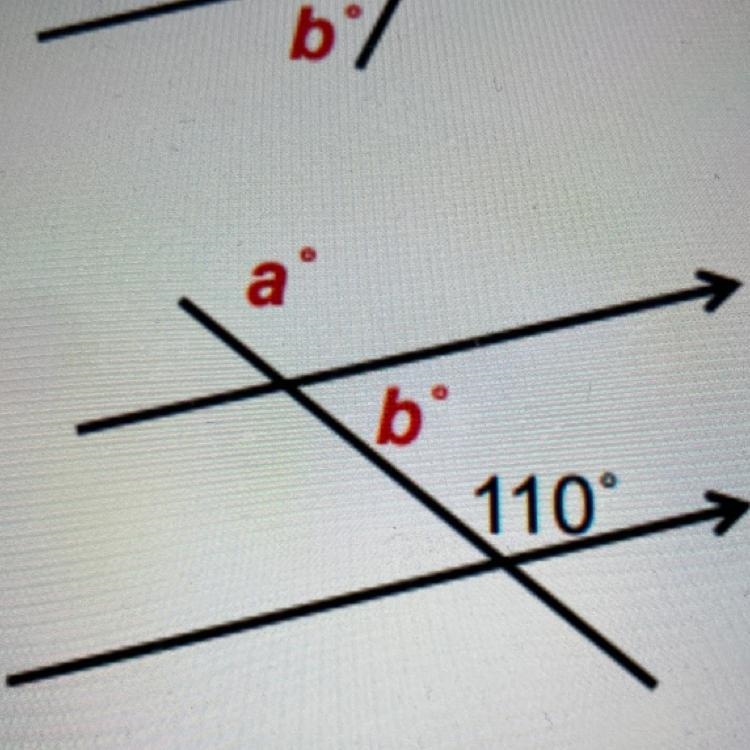 C would be the same as a as they are congruent which means ‘a’ would be 110°. Because ‘a’ and ‘b’ are on the same line and angles on a straight line add up to 180°, if you did 180° - 110°, it would find the answer to ‘b’, which is 70°. Another way to look at this is that ‘c’ and ‘b’ would add up to 180° as well.