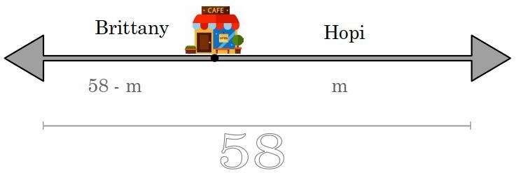 Since the combined distance is 58 miles than if Hopi has covered "m" miles then Brittany covered the slack of "58 - m".