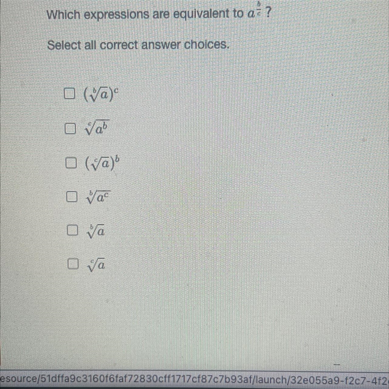 The second one also shows this by having c rooting a, and even though b is not directly the exponent of a, as it is on the outside now, but it is still the same thing and counts.