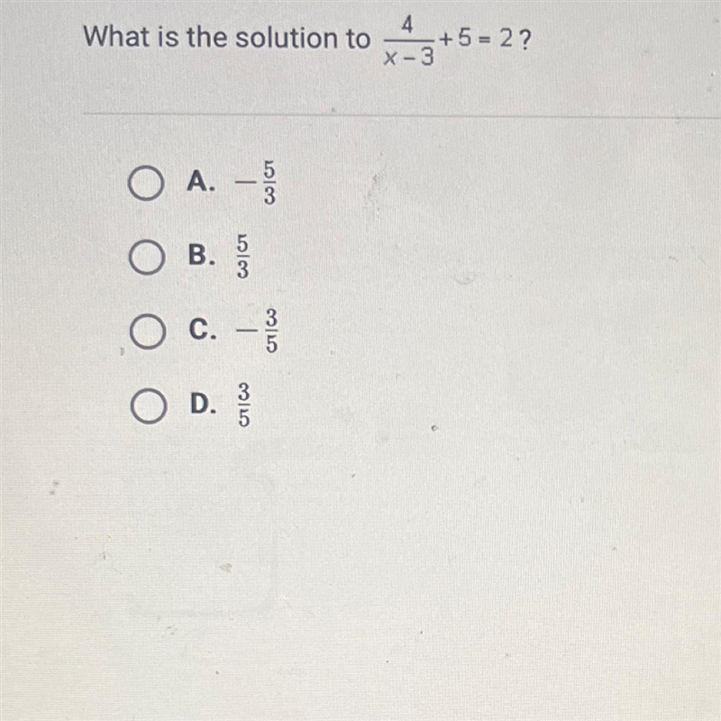 4+5(x−3) =2 (x−3)5x−11=2x−6 (Simplify both sides of the equation)Answer: 5/3