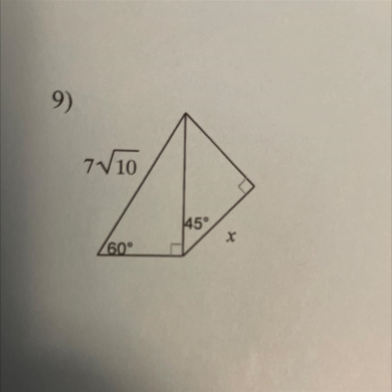 This length is the hypotenuse of the isosceles right triangle. The hypotenuse of an isosceles right triangle is √2 times the length of a leg, so x = (7/2)√15.