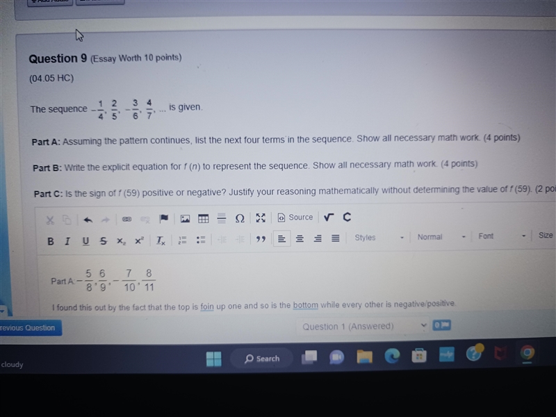 Part A: Assuming the pattern continues, the next four terms in the sequence can be calculated as follows: