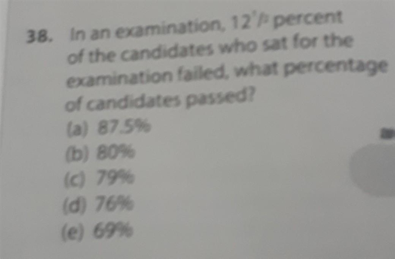 Given that 12.5% of the candidates failed the exam, the percentage of candidates who passed can be calculated as: