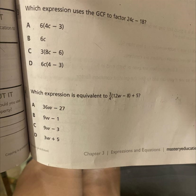 you can see that you can divide both 24c and 18 by 6, and when you do that you get 4c and 3. That means that the answer for that question is