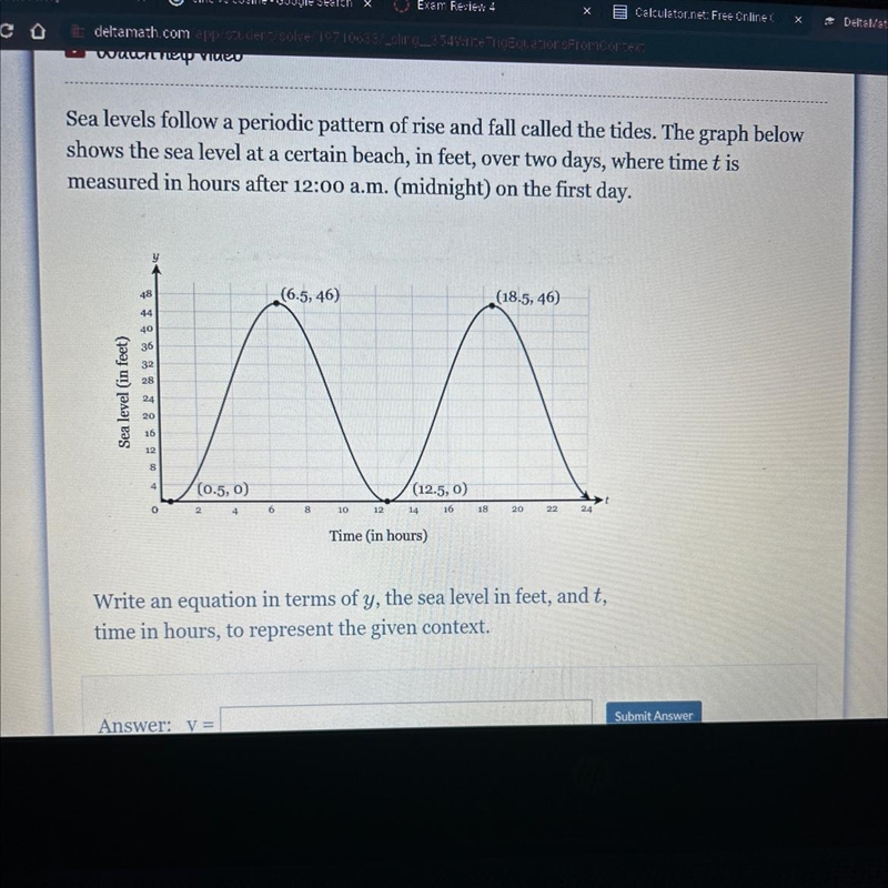 48 44 40 36 32 28 24 20 16 12 8 4 0 (0.5, 0) 4 2 6 (6.5, 46) 10 12 (12.5, 0) 16 14 Time (in hours) 18 (18.5, 46) 20 22 24