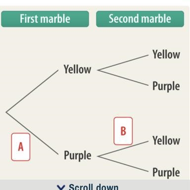 For Box B, we need to find the probability of picking a purple marble on the second draw, given that a yellow marble was picked and replaced on the first draw. Since the marbles are replaced after each draw, the probability remains the same.