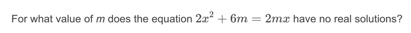 Solving this inequality for m, we find that the equation 2x^2 + 6m = 2mx has no real solutions when m < 0 or when m > 3.
