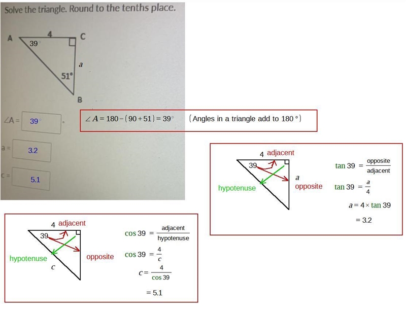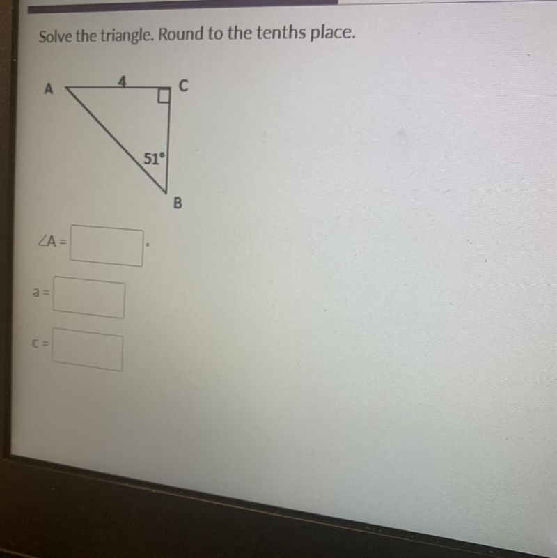 Solve the triangle. Round to the tenths place.