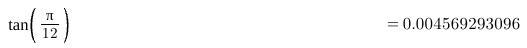 The value of tan pi/12 in decimal is 0.267949192. . .