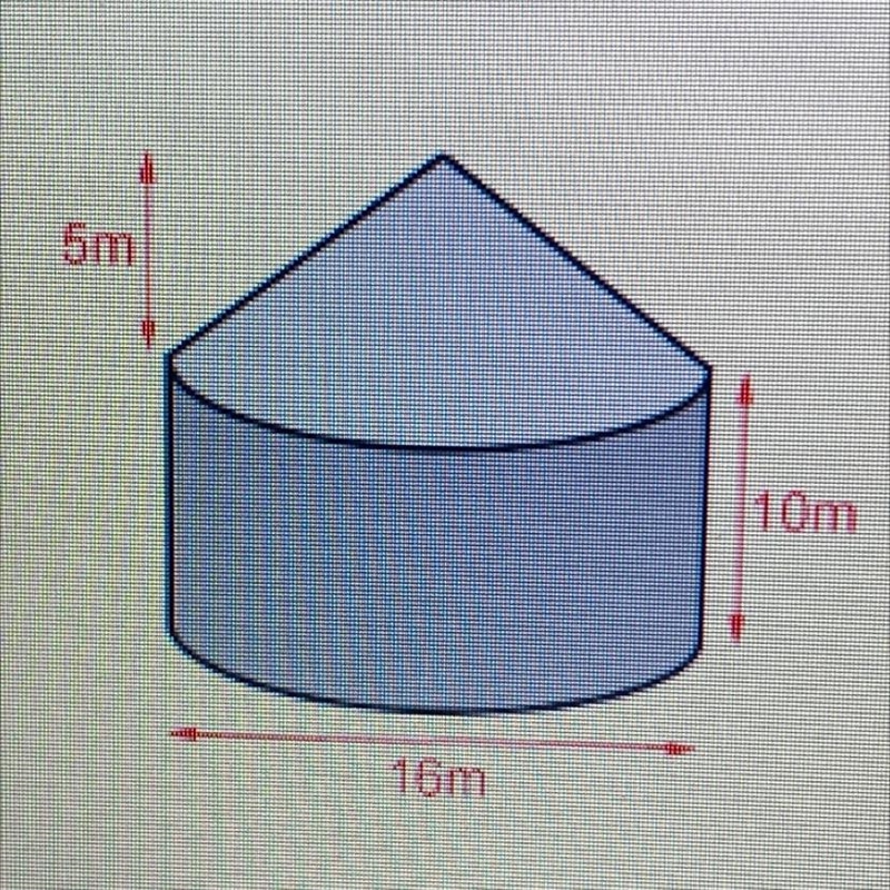 To find the volume of the shape, first find the volume of cylinder and then the volume of the cone. Then, add them.
