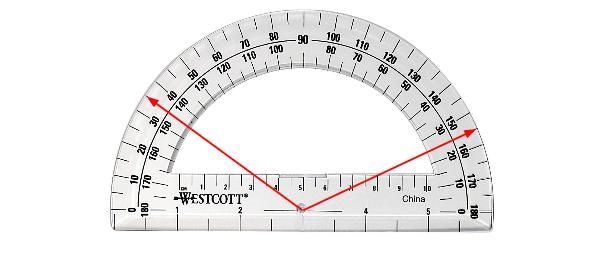 If we were to take two arrows, one directed at 0 and the other directed at 50, then the angle between those two arrows would be 50 degrees.