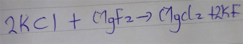 2KCl + MgF2 ➡️ MgCl2 + 2KF