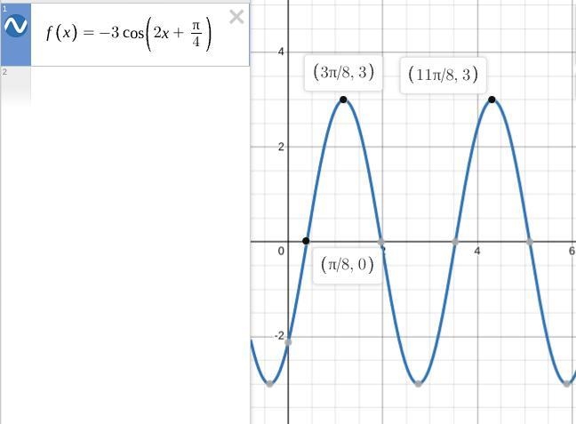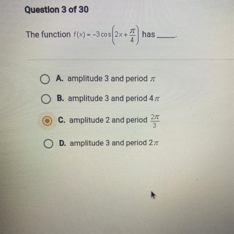 According to the graph attached to this answer, the amplitude is 3 and the period is 8π/8, or just π. This means that A is the correct answer.