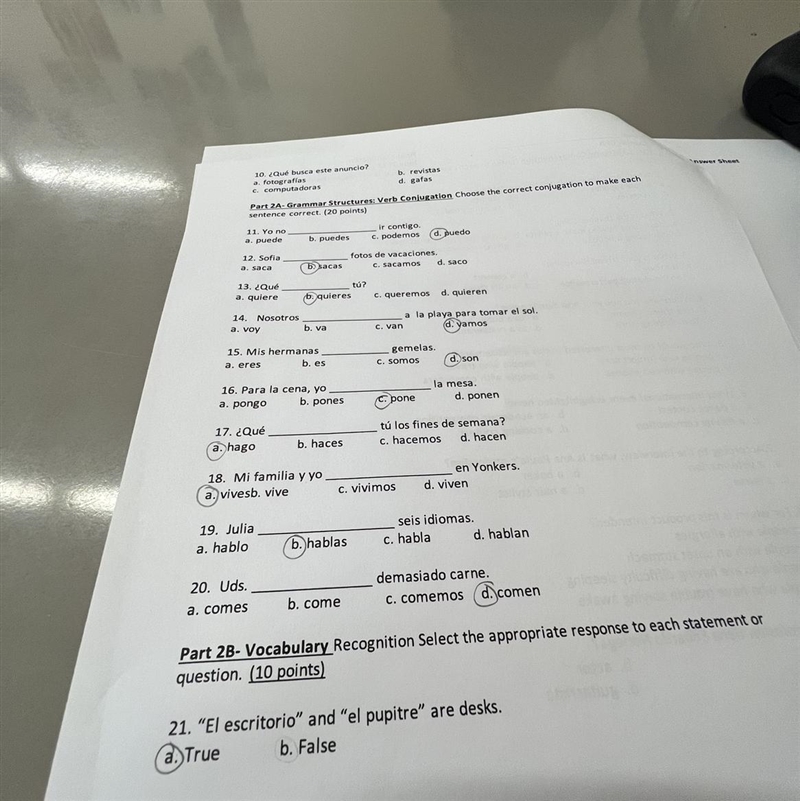 17) Haces (incorrect) (verb 'hacer', 2nd person)