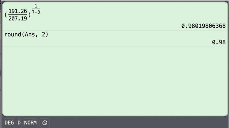 b = (191.26/207.19)^(1/4) ≈ 0.98