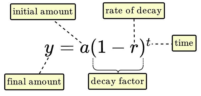 The second attachment shows where the decay factor fits in an exponential function. Writing the function as ...