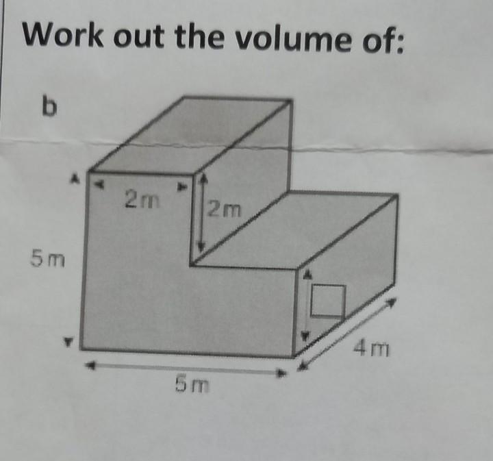 First, start by splitting the figure into 2 smaller rectangular prisms; this can be done vertically or horizontally. I'll solve both ways so you can understand better.