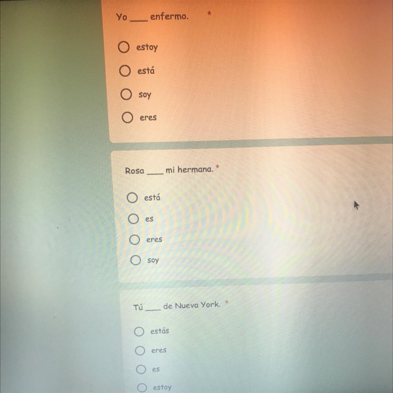 The first one is estoy, the second one is es, the third one is eres.