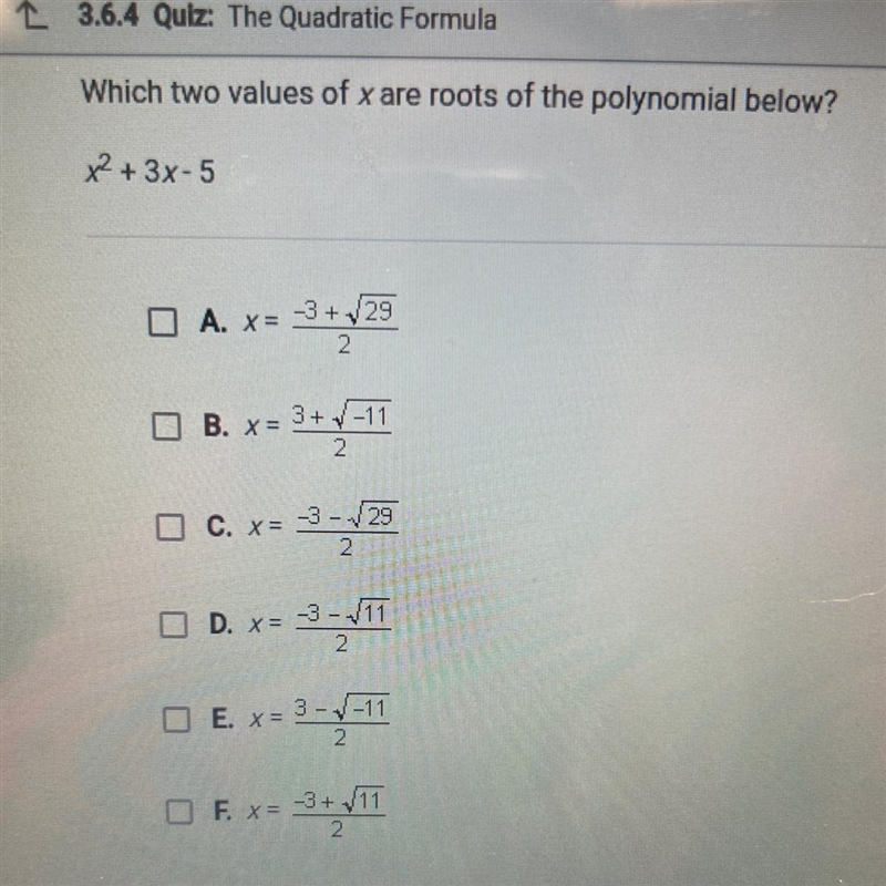 Please help quickly Which two values of x are roots of the polynomial below?