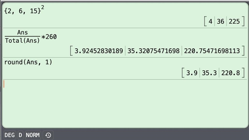 (4/265)·(260 cm²) ≈ 3.9 cm²