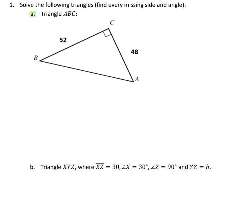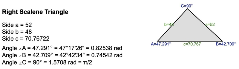 a) ABC, where a = 52, b = 48, C = 90°