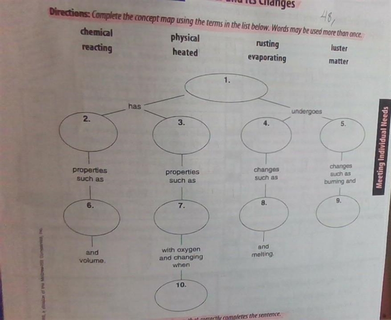 chemical properties such as reacting with oxygen and changing when heated.
