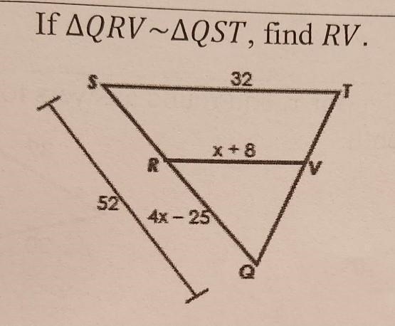 Please help: if triangle QRV is similar to triangle QST, find RV