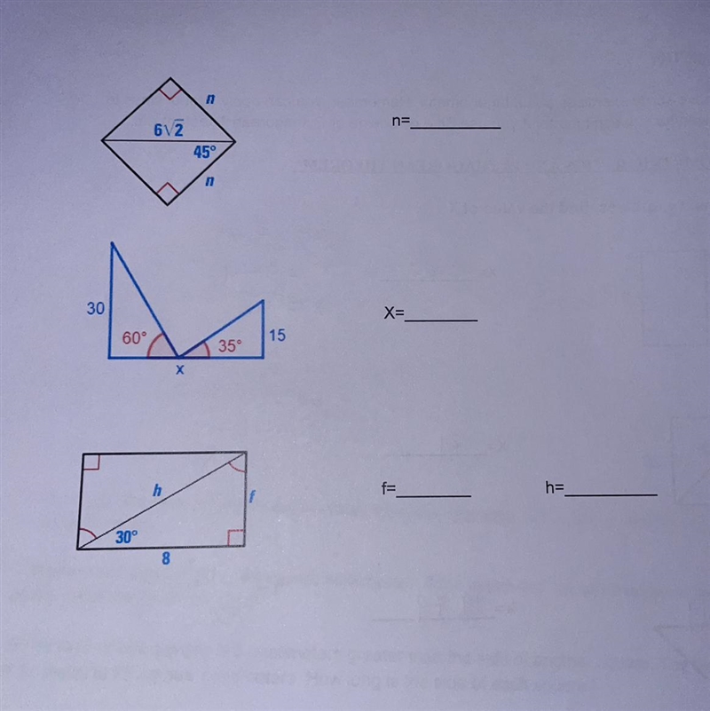 Starting on the first part use the 30 60 90 triangle with given with the length for the 60°