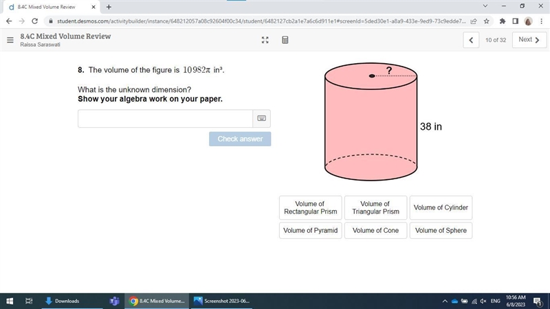 Therefore, the missing dimension, the radius, is 17 inches. Make sure to use the volume of a cylinder formula.