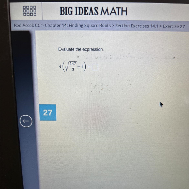 Evaluate the expression. 4 (√147/3 +3)
