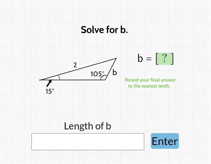divide both sides by sin105 to get. b = (2 x sin15)/sin105