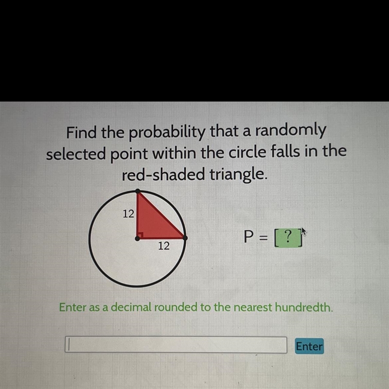 and so, that fraction of the area of the whole circle that is the area of the triangle in refutation to the area of the whole circle is the probability that a random point inside the circle would be also inside the triangle.