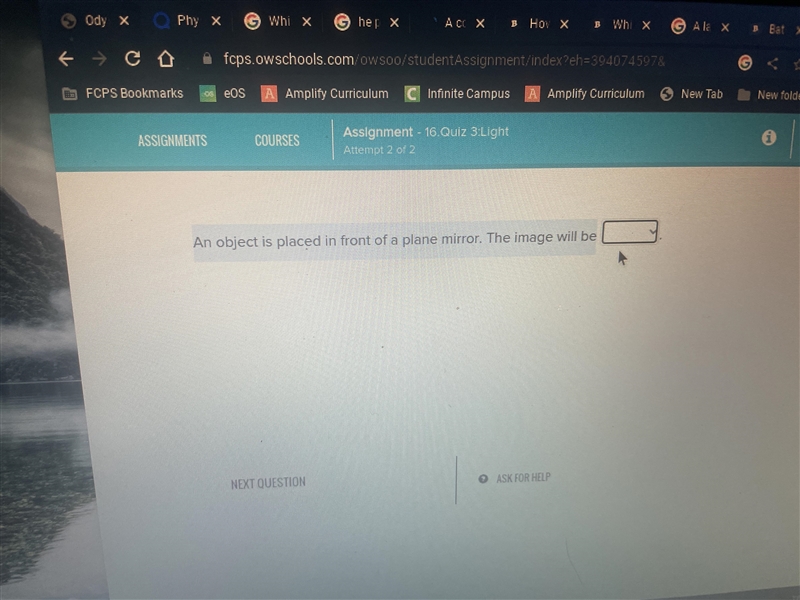 Virtual, erect, and equal in size to the object. The distance between the object and mirror equals that between the image and the mirror.
