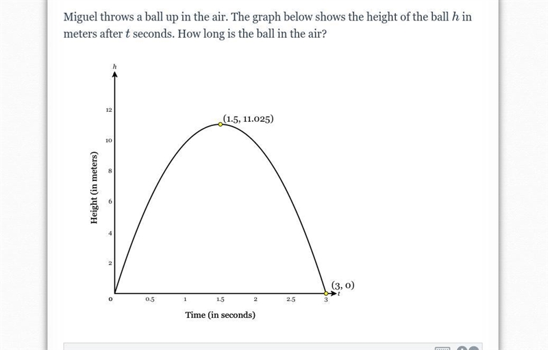 They want to know how long? That is time, which is the x-axis. How long is your curve, it goes til 3 so the ball was in the air for 3 sec.