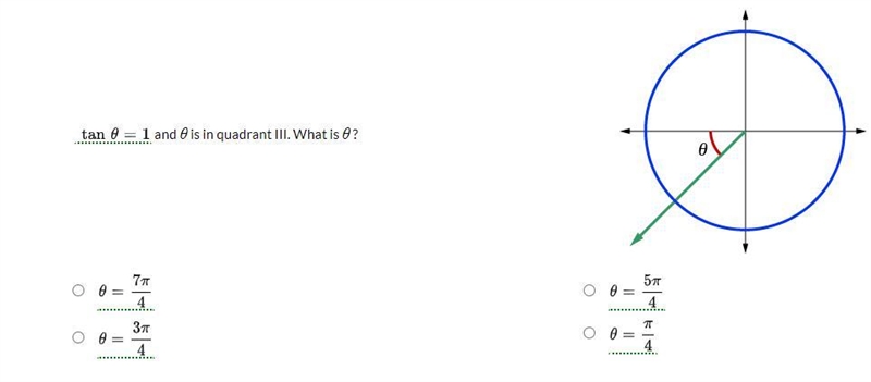 ⇒ θ = 45° = π/4 (this lies in the 1st quadrant)