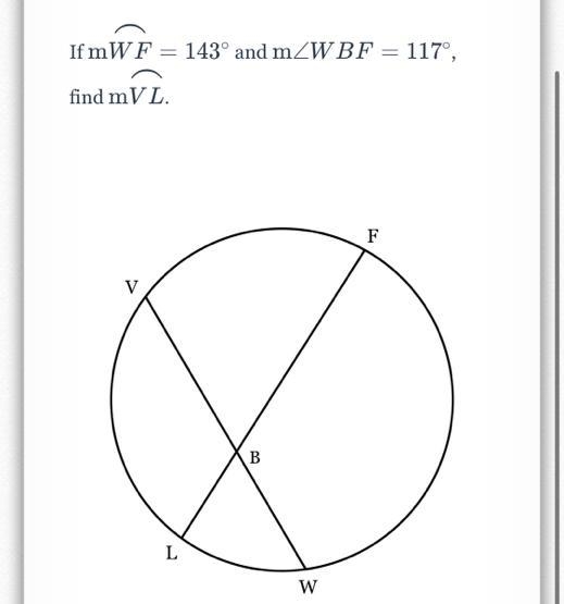 (143 + VL ) = 117° ( multiply both sides by 2 to clear the fraction