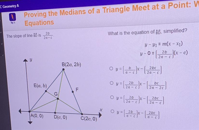 Given the equation of line BD in point-slope form you want the simplified equation.