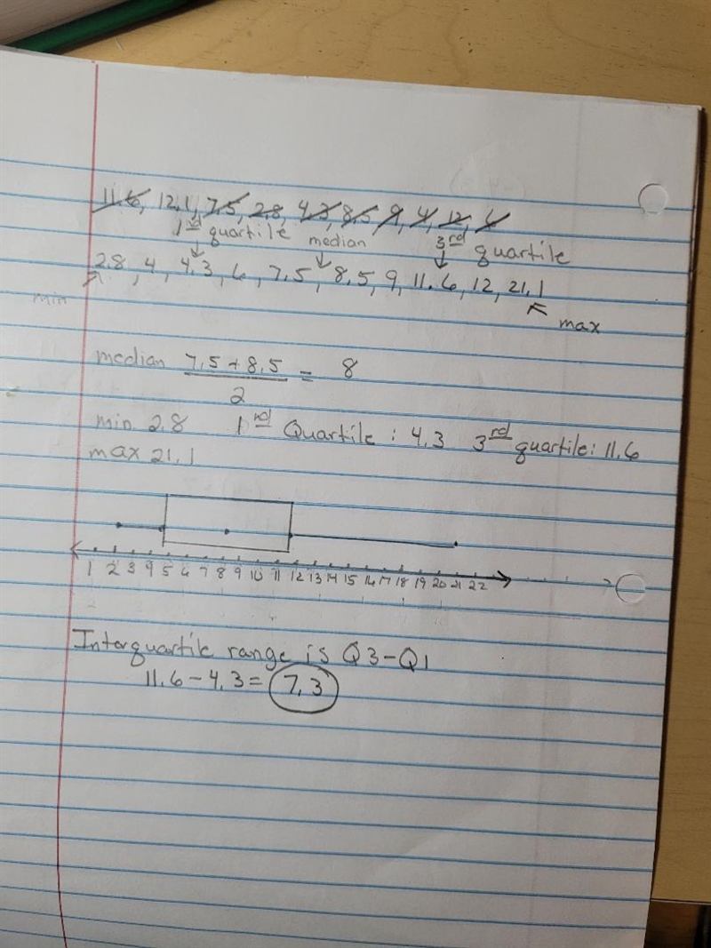 11.6 - 4.3 = 7.3