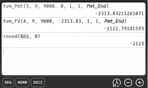 A = 9000(0.09)/(1 -1.09^-5) ≈ 2313.83