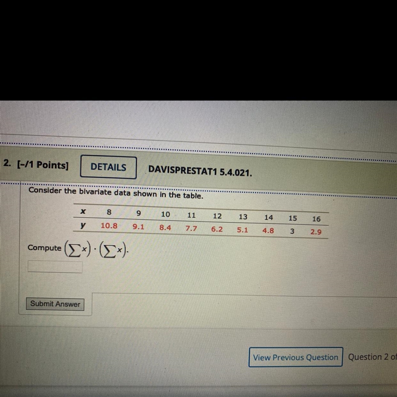 (Σx)*(Σx) = Σx^2 = 108 * 108