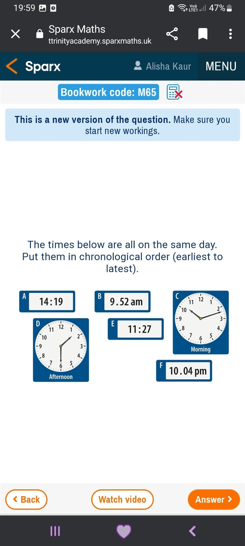 Put the times in chronological order