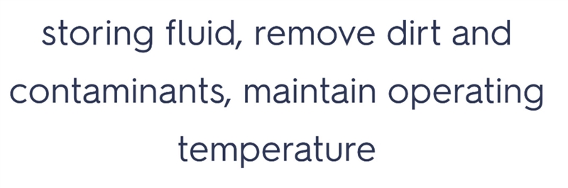 storing fluid, remove dirt and contaminants, maintain operating temperature