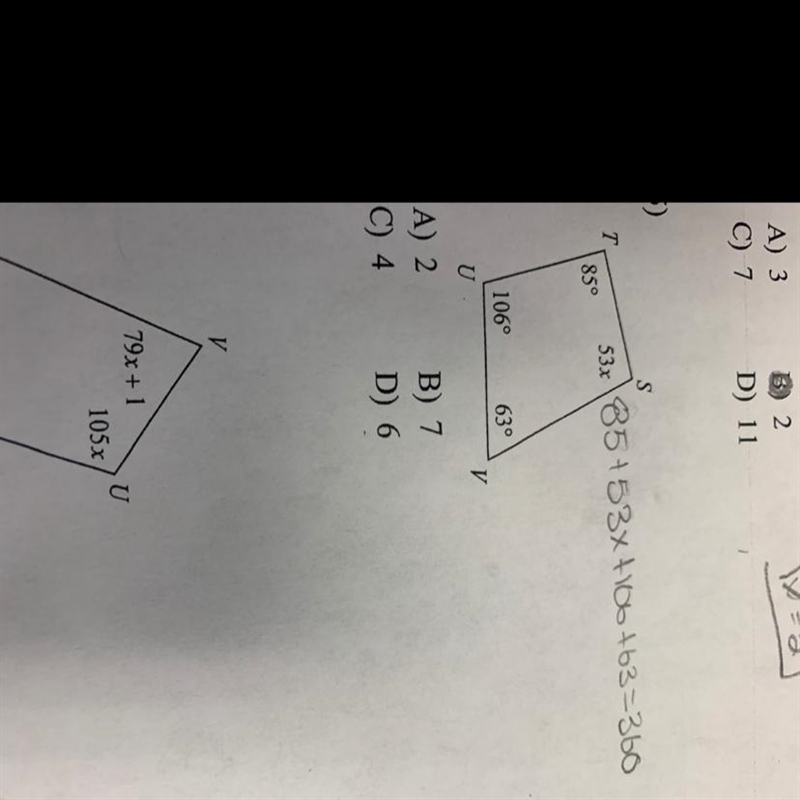 The given diagram is a irregular polygon with 4 sides. The sum of all the angles U, V, S, T is equal to 360.