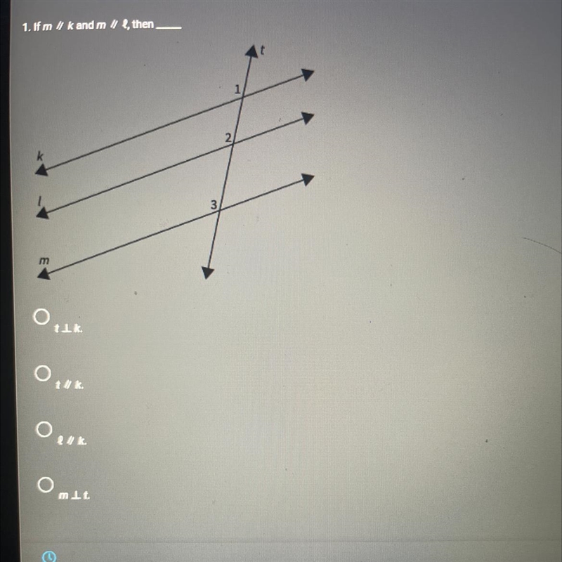 l // k. As if m is parallel to both k and l, then k and l obviously are parallel as well :)
